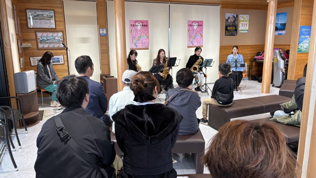 雨天のため、「天空のローズ音楽会」は美浜テラスインフォメーションハウス内で実施し(➀10:30~➁13:30~)、